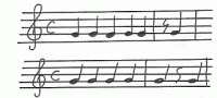 We draw a few notes, the measue grow in size