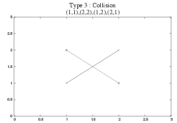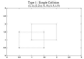 x1=1,x2=2,y1=1,y2=2,x1'=1,x2'=2,y1'=2,y2'=1 if x1>x2' : return false if x1'>x2 : return false a=(2-1)/(2-1)=1 a'=(1-1)/(2-1)=-1 b=1-1*1=0 b'=2-(-1*1)=3 xsol=(3-0)/(1-(-1)) xsol=1.5 xsol>1&&xsol>1&&xsol<2&&xsol<2 : true return true Collision !